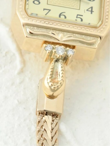華奢なレディース腕時計:アガット スクエアフェイスジュエリーウォッチ