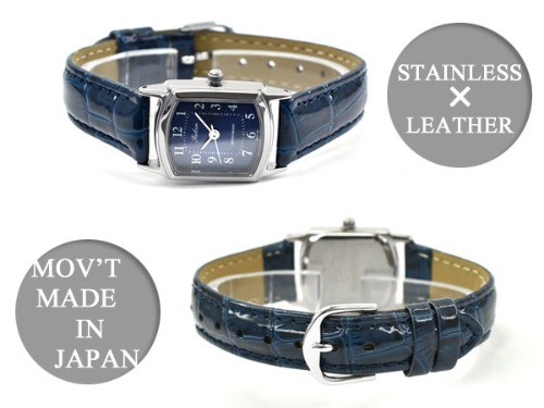 美しいレクタングルケースが採用されたレディース腕時計で、ブルーカラーが落ち着きのある印象と爽やかな印象を腕元に作ります。