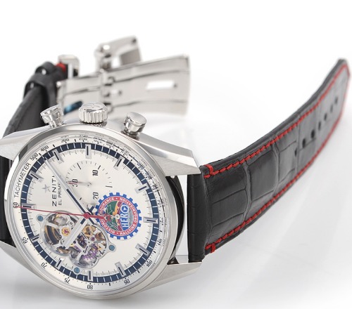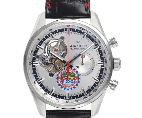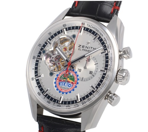 イギリスのクラシックカーラリーのHERO(Historic Endurance Rallying Organisation)カップとゼニスのパートナーシップを記念して世界100本発売のレアなメンズ時計です。文字盤の6時位置のインダイアルにはHEROカップのロゴがプリントされています。