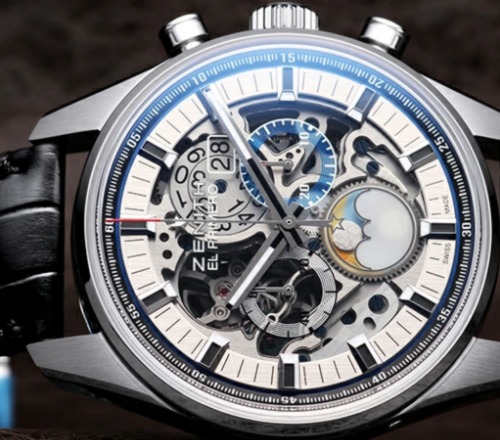 ゼニスの中でも人気がある"エルプリメロクロノマスター"は、シースルー文字盤やムーンフェイズ搭載のモデルも発売されおり優れたデザイン性と機能性でありながら良心的な価格で販売されています。