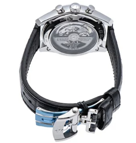 エルプリメロ搭載の2017年新作のゼニスのメンズ腕時計で、パワーリザーブが約50時間で100m防水という高精度な仕様で多くの男性が愛用しています。また、両面スケルトン仕様の新しいクロノマスターで人気が高いモデルの一つです。