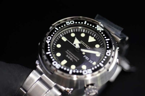 300mの高い防水性能が搭載されている上に、ルミブライト針&インデックスなので暗い場所でもしっかりと正確な時間の確認ができます。