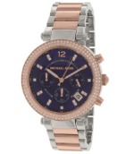 マイケルコースはファッションウォッチとして人気が高く、ピンクゴールドカラーのケースとダークブルーの文字盤が印象的な腕時計です。