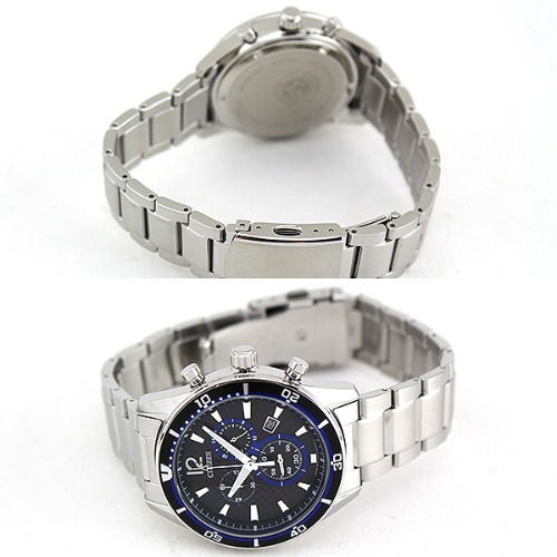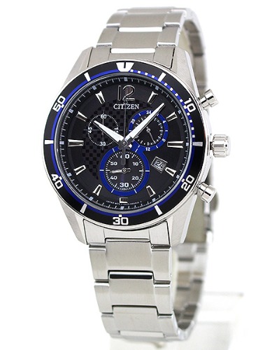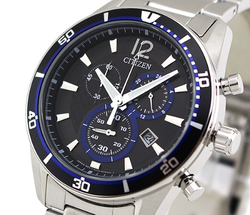 シチズンの「VO10-6741F」はブラックカラーのダイヤルやベゼルにアクセントとしてブルーカラーがデザインされています。