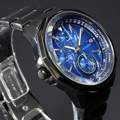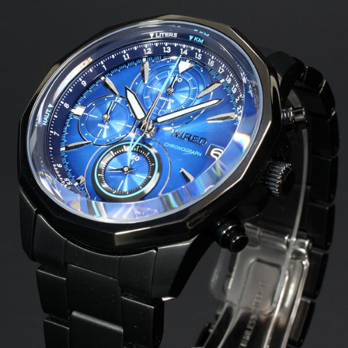 「AGAW421」はセイコーワイアードの人気腕時計で、ブラックの高級感のあるボディにブルーの爽やかなダイヤルがデザインされています。