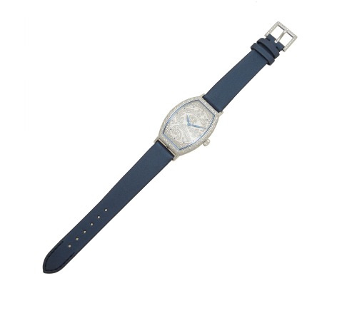 ギョーシェ彫りが施されたシェル文字盤、そして最高品質のダイヤモンドのみが用いられたベゼでジュエリーとしても高いクオリティを誇るレディース時計です。