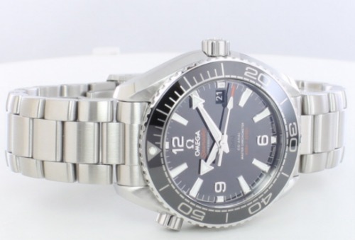 こちらのモデルはオメガのハイクラスダイバーズモデルとして人気が高く、セラミック製逆回転防止ベゼルやエスケープバルブを備えた本格的な600m防水ケースと蛍光塗料付きアロー指針、立体バーインデックス、そして12・6・9アラビア数字を備えた文字盤が高級感をプラスさせているメンズ腕時計です。