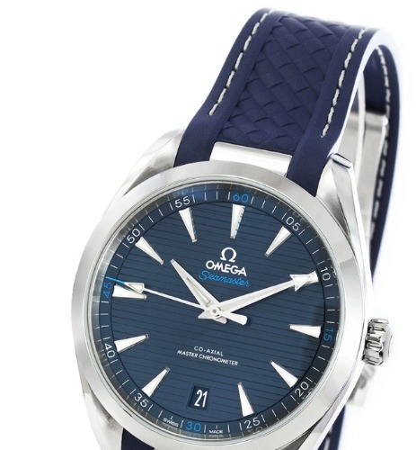 横ストライプダイヤルとステッチ入りブルーカラーのベルト、そしてブルーカラーの文字盤爽やかに引き立つアクアテラは、実用性高いスポーティで洗練されたデザインが男性の手元に大人のクラス感を香らせるオメガ人気のタイムピースです。