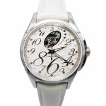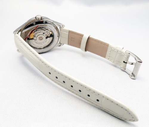 20万円以下で購入できる腕時計の中でも優雅な印象を感じるレディース腕時計で、ホワイトシェル文字盤にダイヤモンドインデックスが採用されています。