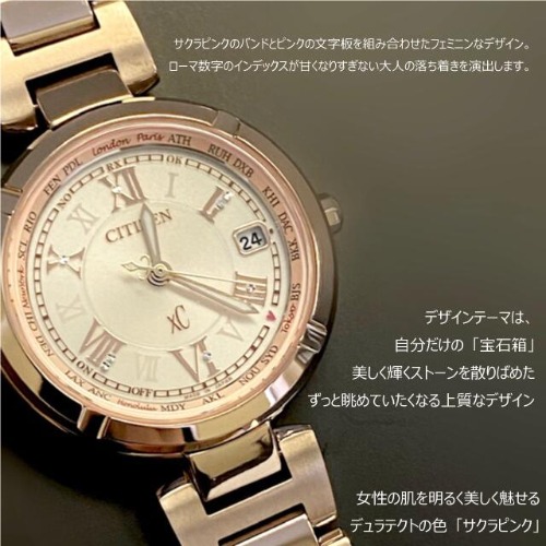 ピンクカラーが可愛い印象を作るとともに、ソーラー電波時計でもあるため、実用性に優れています。