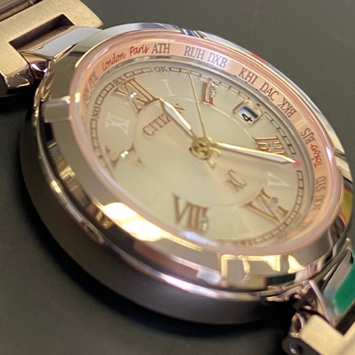 評価:ダイアル部分が柔らかみのあるピンク(ピンクベージュ)系で、バンドの色がコンビですが、肌馴染みの良いピンクゴールド?が品良くステキです。ダイヤもチラチラキラキラで派手でなく、使いやすそうです。バンドサイズを0.5cmプラスでお願いしましたが、きつくはないものの、もう少し余裕が欲しい感じになりました。