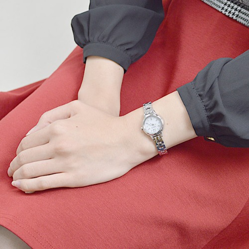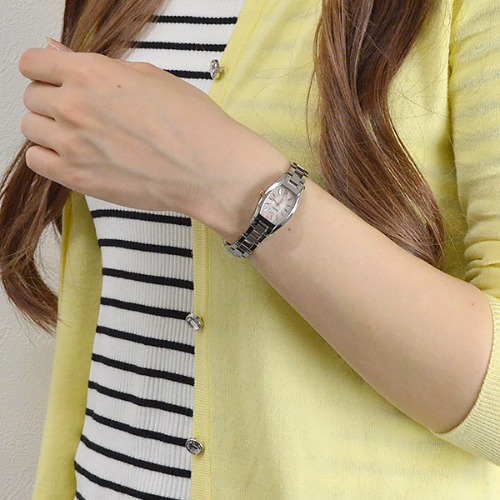 シンプルな3針モデルなので視認性にも優れており、トレンドに左右されないおしゃれなレディース腕時計です。