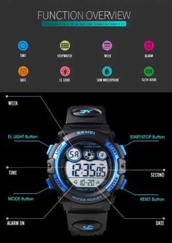 SKMEI(時刻美)のデジタル腕時計 スケルトン-ブルーは、スケルトンカラーがカッコいいキッズ向けの腕時計です。