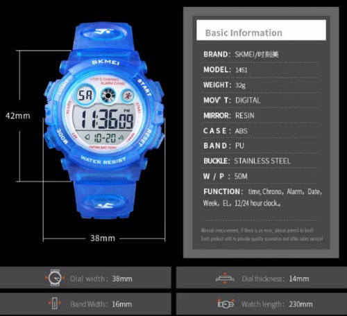 小学生×腕時計:SKMEI デジタル腕時計 スケルトン-ブルー