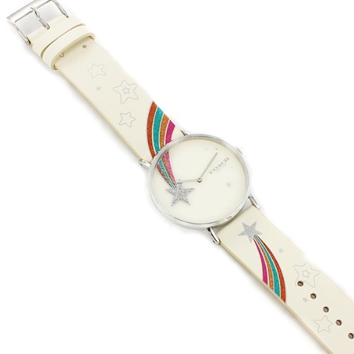 コーチのペリー 14503040は、アイボリーカラーに流れ星があしらわれた斬新なデザインの腕時計です。