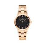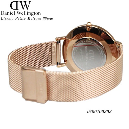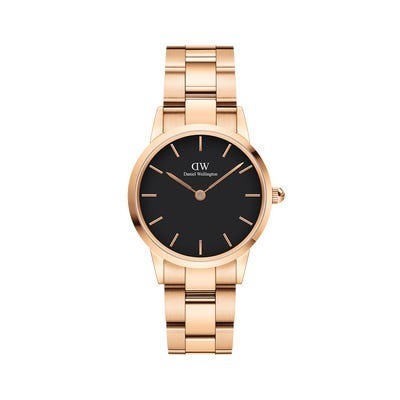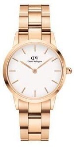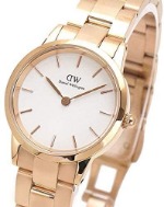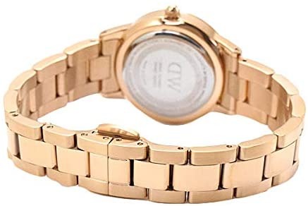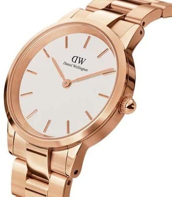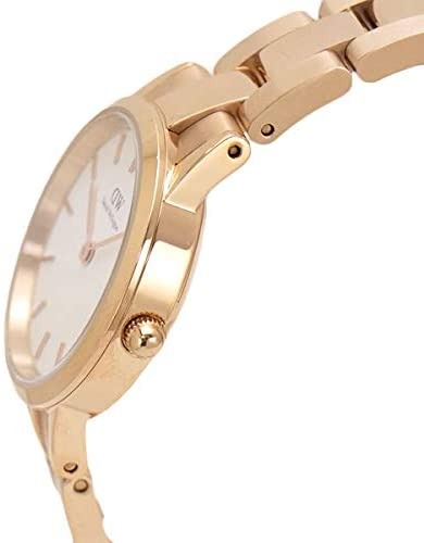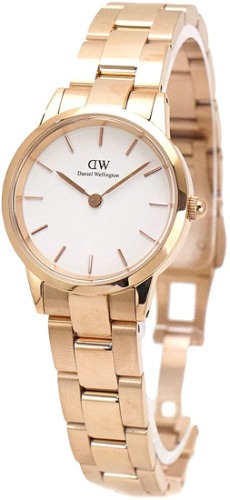 DW00100213はケース径は同じで文字盤が白になったレディースのアイコニックリンクは、ドレスウォッチとしても使える華やかさがあります。ケース径が28~36mmから選べるアイコニックですが、小さめの径でも高級感があるとの意見が多いです。このローズゴールドカラーはイオンプレーティングと呼ばれる特殊な加工によって生まれたもので、独特の色合いが味わえます。