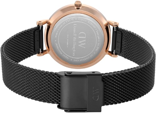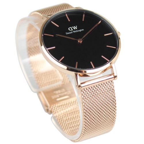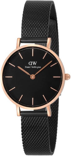 ペティートメルローズはブラックの文字盤にゴールドのメッシュベルトが手元をラグジュアリーに見せてくれます。ペティートシリーズはダニエルウェリントンの中でも安いモデルなので、初めてペアウォッチを贈る人にも人気です。ペティットメルローズはローズゴールドカラーが肌に馴染みやすく、ブラックの文字盤でも重たく見えないのが特徴です。