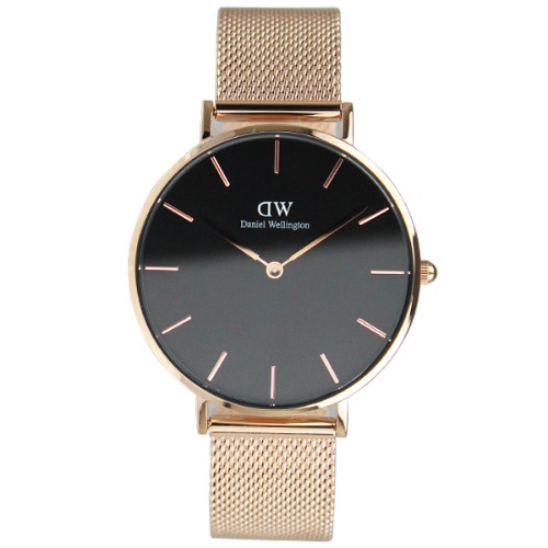 ダニエルウェリントンペティートのアッシュフィールドDW00100307は、クラシックシリーズよりもベルトの幅を細くしてよりスタイリッシュに着用できます。ペティートアッシュフィールドは、ブラックベースでクールなデザインなのに幅広いコーディネートに使え、メッシュベルトのつけ心地のよさも人気の秘密です。