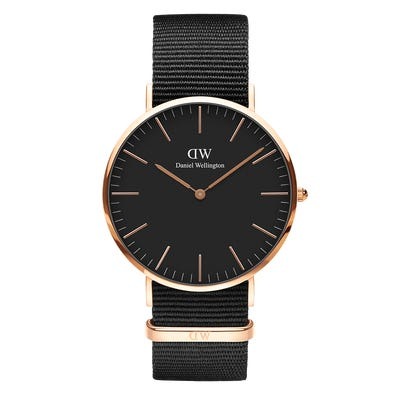 ブラックベイズウォーターは、ブラックの文字盤にローズゴールドのケースにミッドナイトブルーのNATOストラップを組み合わせたシックなデザインになっています。上品でシンプルな文字盤にNATOストラップの組み合わせであるブラックベイズウォーターは、トレンチコートやジャケットなどきれいめなスタイルを好む人に好評です。