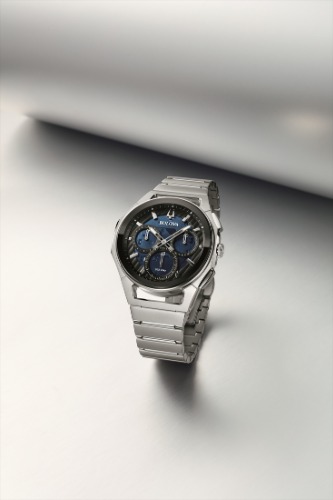 さらにクロノグラフの機械的な文字盤はよく見ると微細なラメ入りで、宇宙空間を意識しています。