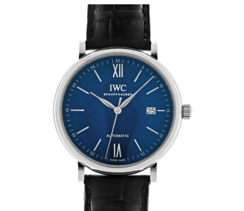 ブルーカラーの文字盤で爽やかで洗練された印象があるIWCシャフハウゼンのポートフィノ時計です。ビジネスシーンだけでなくフォーマルなシーンにも着用することができる万能なメンズ時計です。