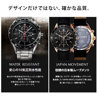 評価:普段は10万くらいの時計をしていますが、この時計のデザインは値段を考えるとかなりいいと思います。あまり安時計に見えません。ベルトは金属だと安っぽく見える気がして革にしました。革もよく見ると値段相応ですが、黒いのであまり目立ちません。