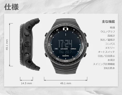 本格的な登山や雪山を楽しみたい方には、高度や気圧などの計測機能が備わっているスントの腕時計をおすすめします。