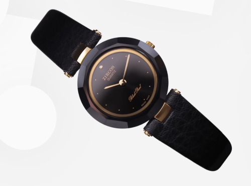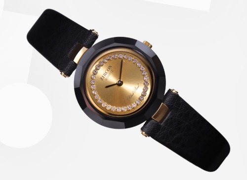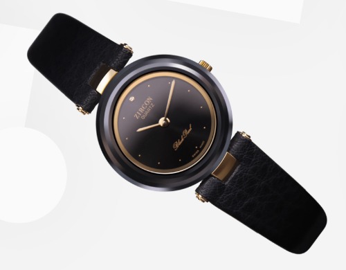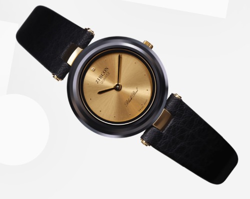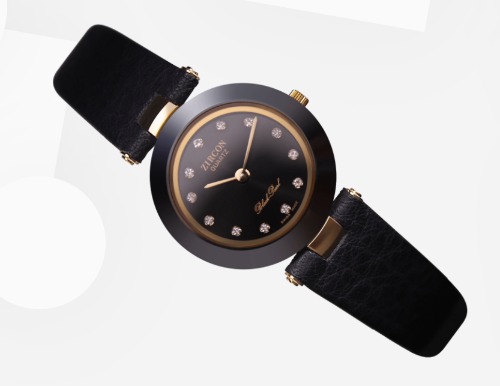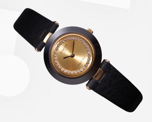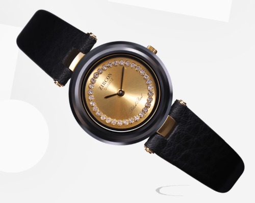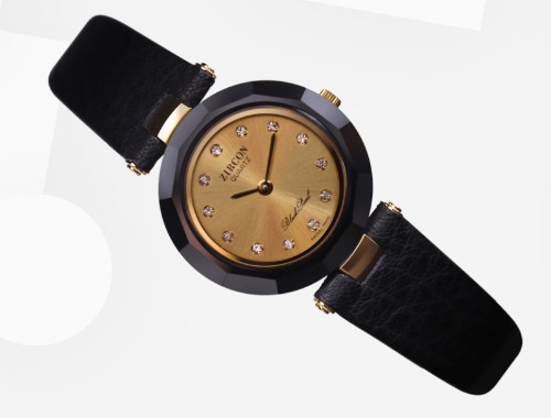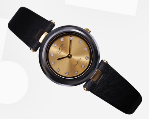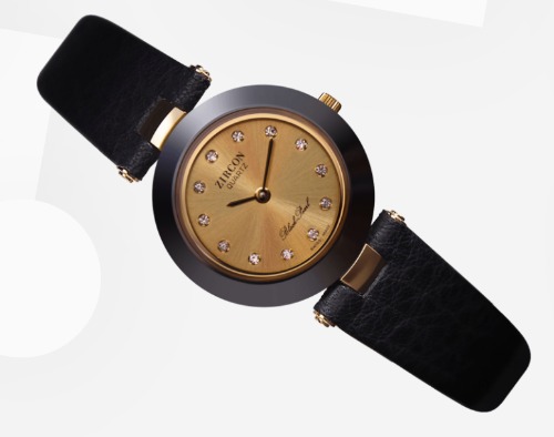 Zirconの腕時計ではゴールドデザインとブラックデザインの文字盤が存在し、どちらも金メッキならではの美しい光沢を放ちます。