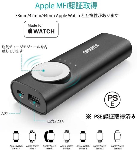 CHOETECH | CHOETECH 5000mAh大容量 | ADDSMILE | TUNEWEAR | ベルキン | Firenew | Apple Watch ポータブル バッテリー チャージャー | |