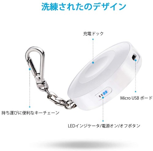 キーチェーン型の超小型なデザインでありながら700mAhの容量を誇るモバイルバッテリーで、しかもマグネット吸着式充電なのでスペースも全くとりません。