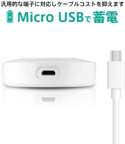 ワイヤレス充電式なのでケーブルなどに縛られること無くどこでも充電ができ、出先でのバッテリー切れを気にしなくて済みます。