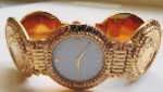 まるでブレスレットのような腕時計で、コンパクトなサイズ感ながらも、ゴージャスな雰囲気を醸し出します。