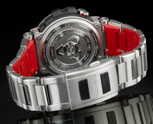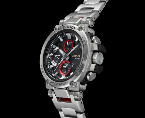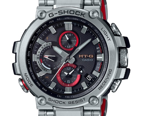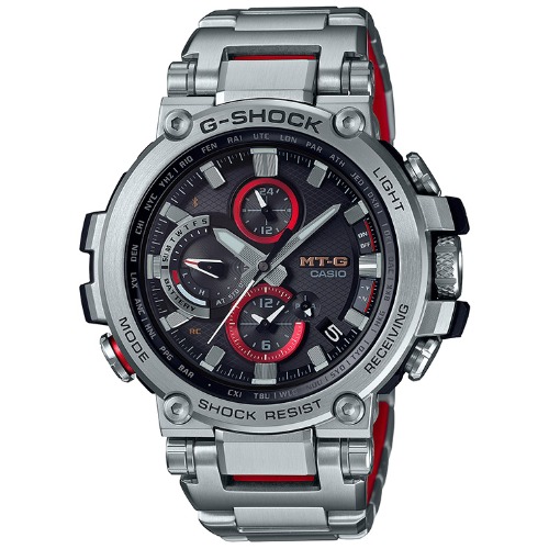 GSHOCK(ジーショック)の「MTG-B1000D-1AJF」は銀色のボディに赤と黒色がアクセントカラーで採用されている腕時計です。