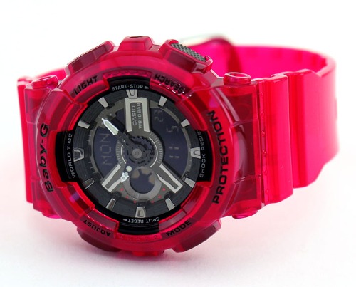 Baby-Gの「BA-110CR-4A」は赤色の中でもクリアカラーが採用され、透明感のある美しい腕時計に仕上がっています。
