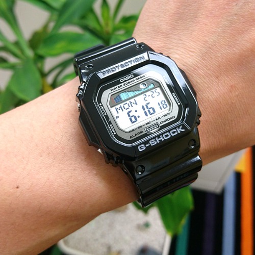 評価:釣りで使用するのに、5600の形でタイドグラムがほしかったのですが、G-LIDEシリーズはどれも見た目が派手で好みではありませんでした。こちらはマットで落ち着いた色に、グリーンの文字と液晶の柄がアクセント程度に主張していてとても気に入りました。主観ですが、サーフボードの柄とは誰も気が付かないと思います。