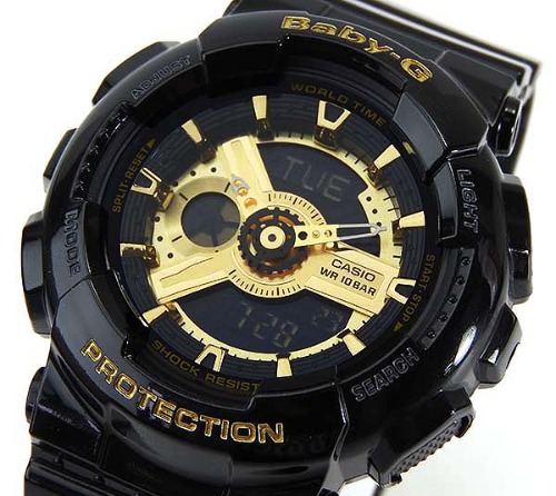 Baby-Gの「BA-110-1A」はGSHOCK「GA-110GB-1A」と同じブラックボディにゴールドデザインが施された腕時計です。