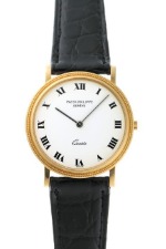 パテックフィリップ「カラトラバ 3744J」は クル・ド・パリベゼルのラウンドウォッチとして人気があり、シンプルで美しいデザインが魅力的です。