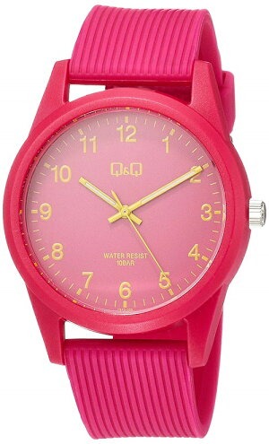 シチズン Q&Q VS40-009は、鮮やかなピンクで統一された3針モデルです。