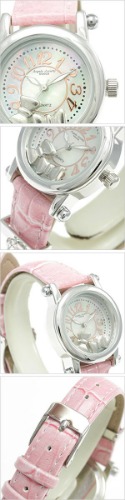 tvs-l A-1は、ピンクカラーとベゼルのストーンが印象的なレディース腕時計です。