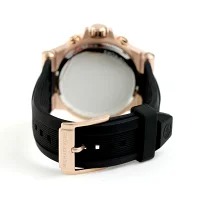 華やかなピンクゴールドカラーを採用したビッグケースが、腕元にインパクトをプラスします。