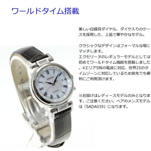 セイコー エクセリーヌ SWCW109は、大人のレディースに相応しい美しい白蝶貝ダイアルが魅力的なレディース時計です。