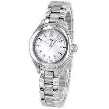 評価:デイト機能付きのシンプルで飽きの来ない、使いやすいレディース時計です。どんなシーンにも合わせやすいので重宝しています。10万円くらいで購入しましたが、年齢を重ねても使える時計ですね。