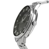 すっきりとした印象のシンプルでスタンダードなデザインの腕時計は、薄型に見えるケースデザインを採用しています。