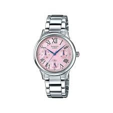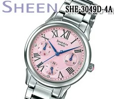 カシオ SHEEN SHE-3049D-4Aは、女性らしいピンク文字盤と青色の針が印象的な時計です。