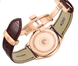 イエローゴールドの時計は主張が強いものがほとんどですが、ブラックレザーと組み合わせたZC002GWHなら派手過ぎず上品に決まります。