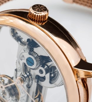 そのため、スケルトンの腕時計というとほとんどがムーブメントで埋め尽くされており、向こう側まで透けて見える部分はほんの少しです。