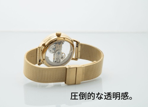 デザインをシンプルにすることで、ムーブメントの美しさと透明感がぐっと映える工夫がされています。
