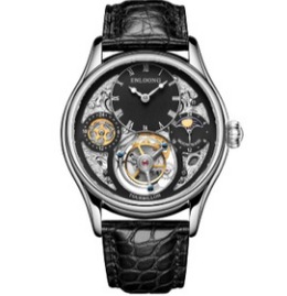 ENLOONGのトゥールビヨン搭載モデル・ENLOONG.ELT2003 ブラックは、フライングトゥールビヨン、ムーンフェイズ、GMTインジケーターが備わった妥協なしのメンズ時計です。