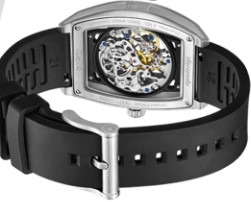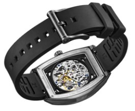 スケルトンやトノー型はきれいめなスタイルと相性抜群ですが、ラバーストラップなのでスポーティーな服にもよく似合います。