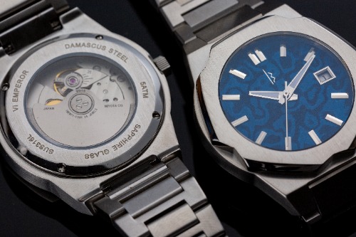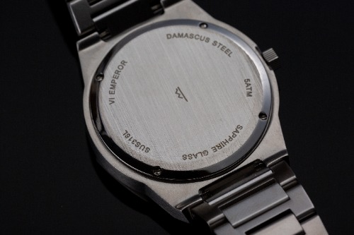 「VI EMPEROR」は神秘の素材と呼ばれるダマスカス鋼を使用した腕時計です。